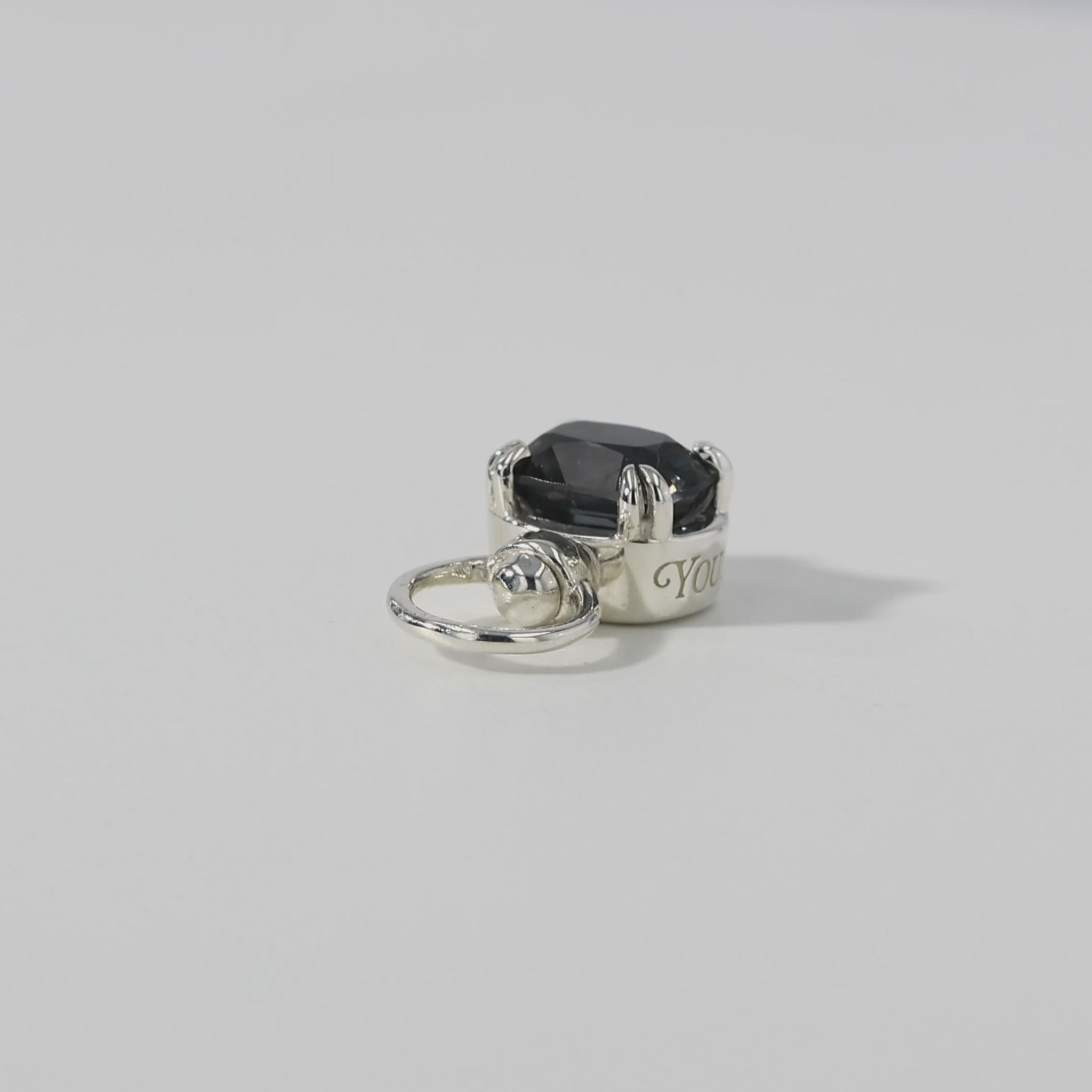 The swivel bail allows the charm to move freely, revealing a hidden engraving on the side that reads "You are one of a kind". Total height including bail is 15mm. Weight is 2 grams.