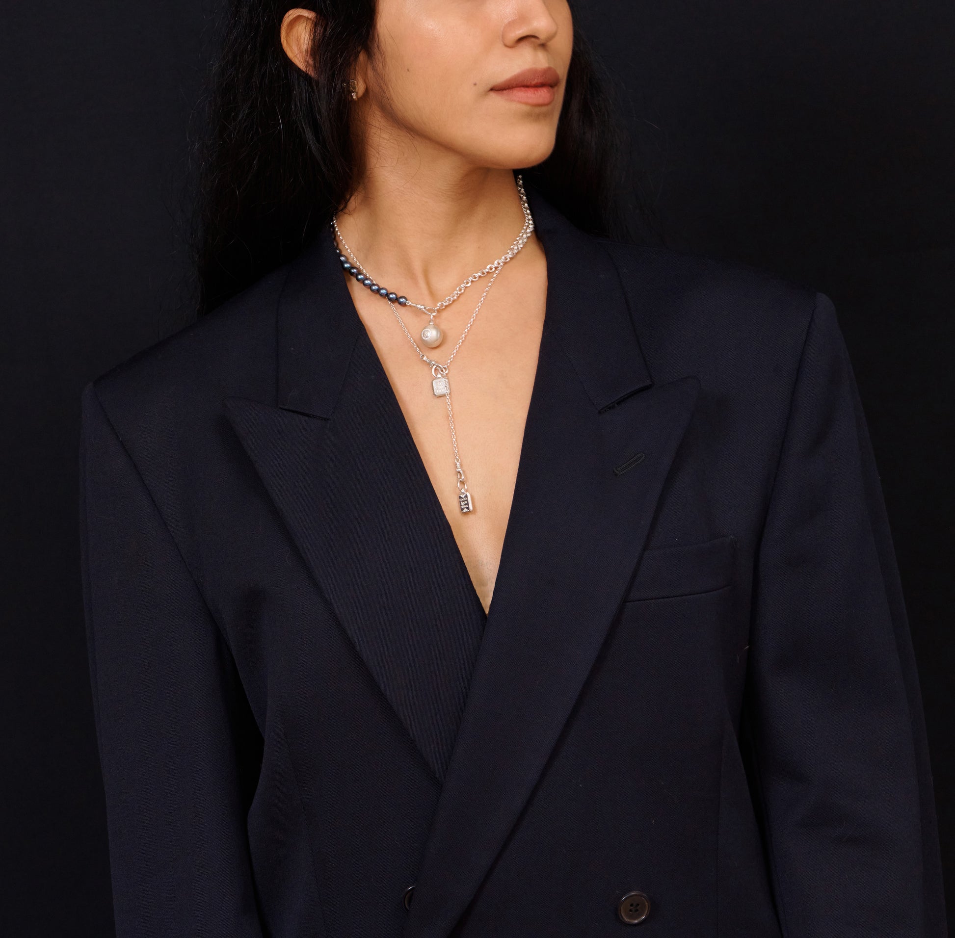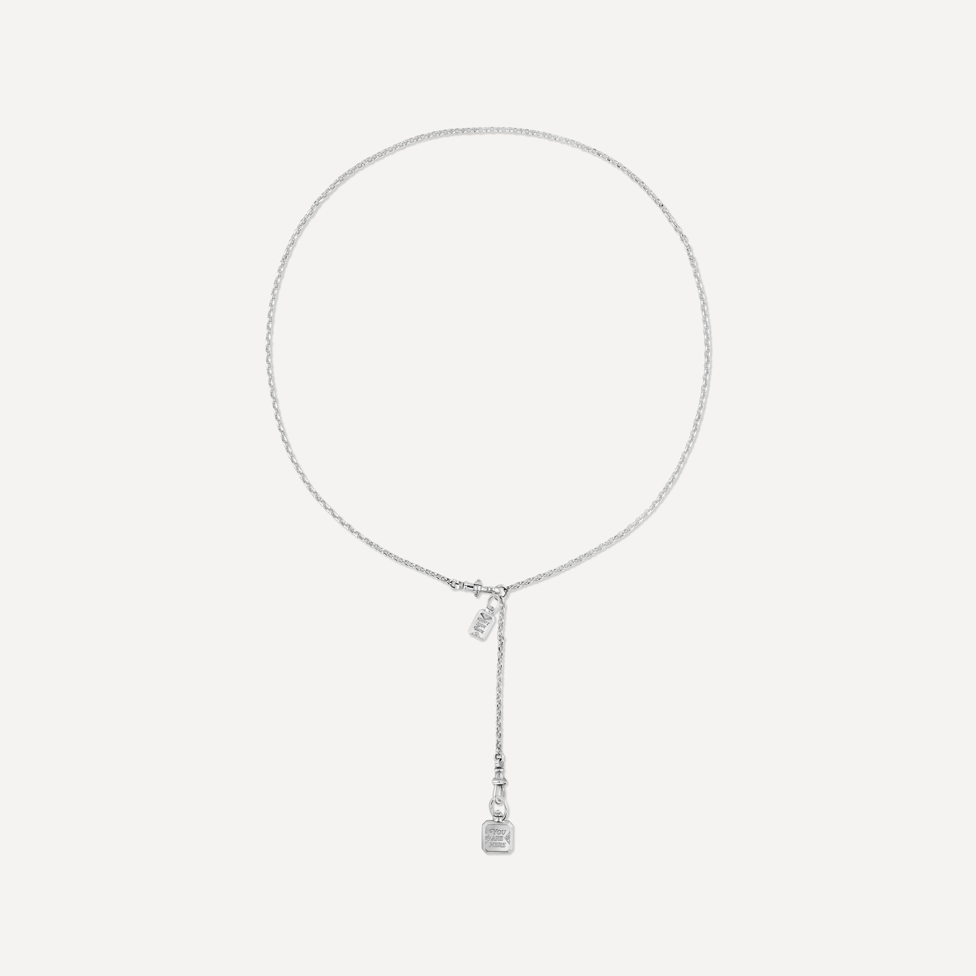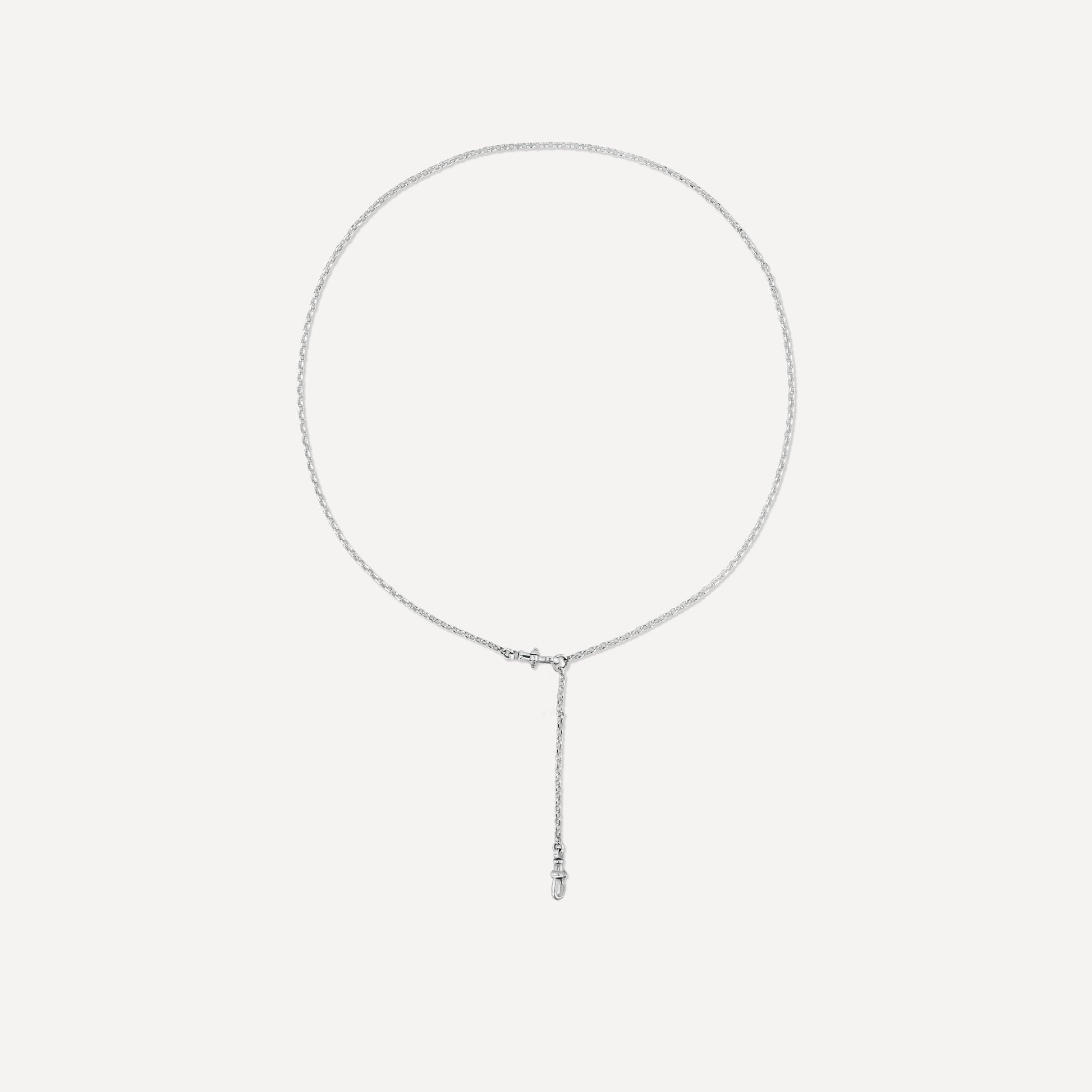 This versatile lariat chain is finished with double swivel push-lock clasps, allowing you to securely attach pendants or charms. Its open, continuous design means it can be worn as one long chain, styled doubled, or layered with other pieces. The functional swivel clasps add both ease of wear and a refined detail that blends seamlessly into the chain.