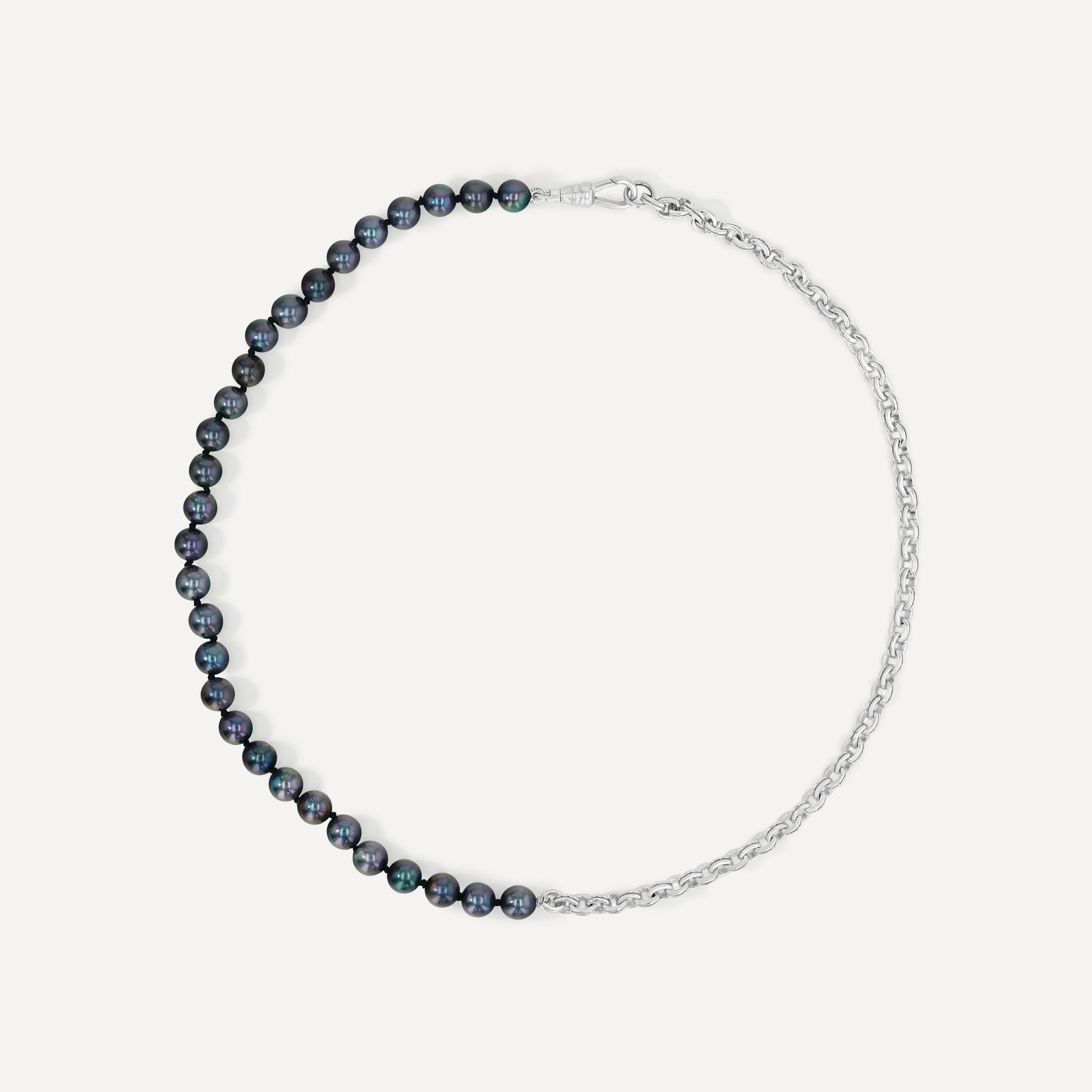 A striking mix of lustrous Japanese Akoya pearls, hand-strung on silk thread, and a polished sterling silver double rolo chain. Finished with our signature swivel push-lock clasp in sterling silver for a seamless closure. Pendant not included.
