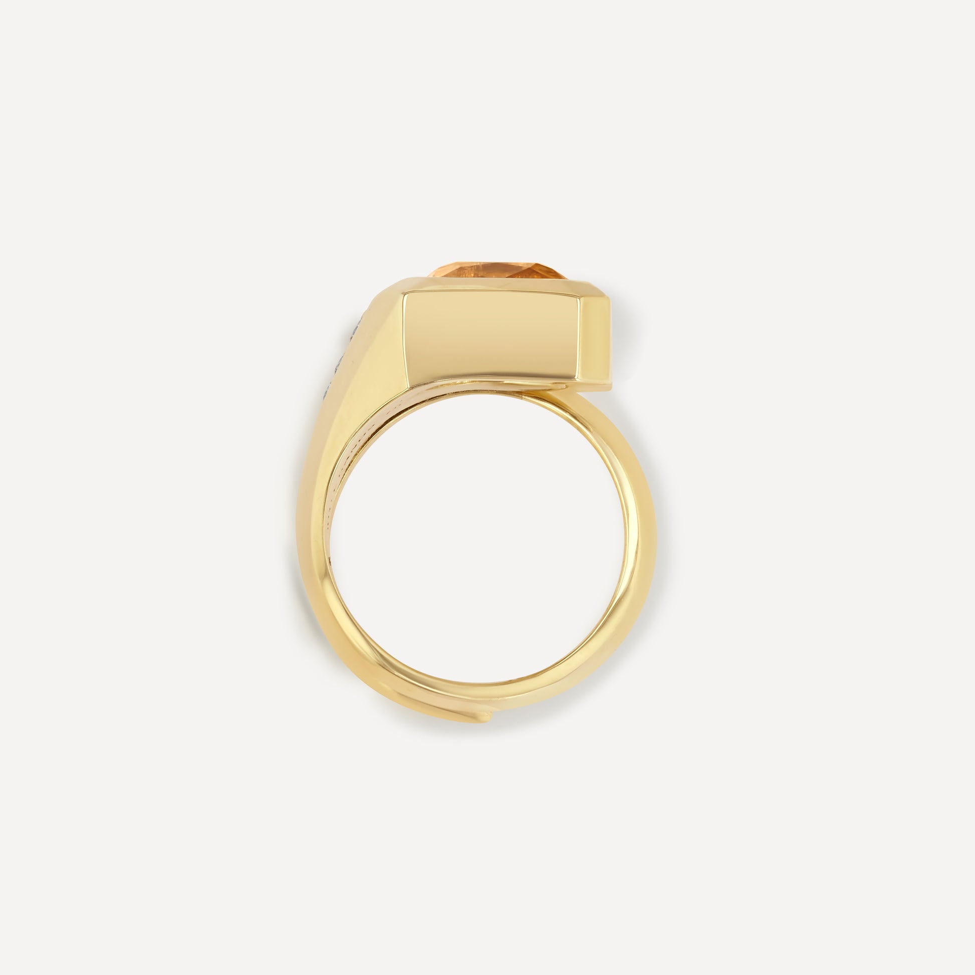 A modern wrap-style silhouette with a refined knife-edge band. The asymmetrical diamond accents create a striking, balanced look that feels both classic and unexpected. Weight is 10 grams.